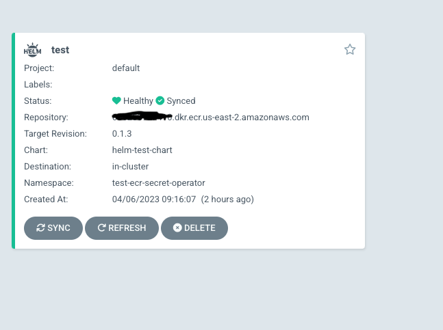 The ArgoCD application should sync with ECR helm chart successfully